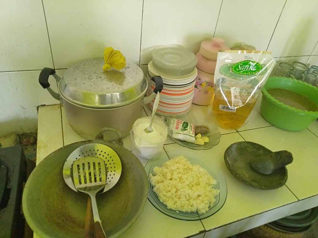 - Masukkan nasi ke dalam dandang, panaskan selama 5 menit